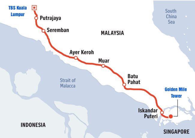 Tại Singapore, bạn sẽ khởi hành từ Golden Mile Tower và điểm đến của bạn là TBS Kuala Lumpur