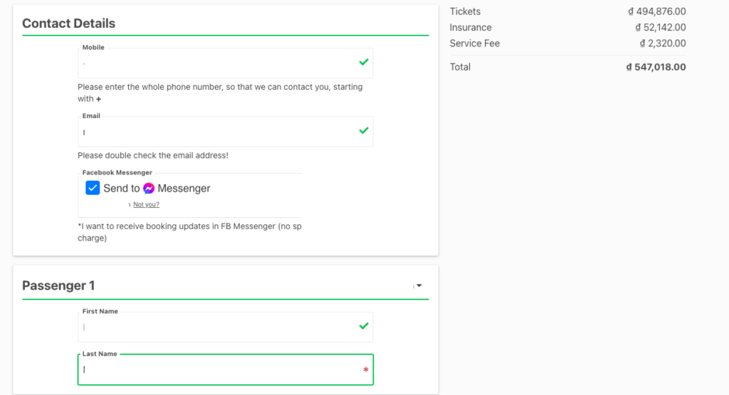 - Sau khi đã chọn chuyến mong muốn, bạn chuyển qua các bước điền thông tin cá nhân.