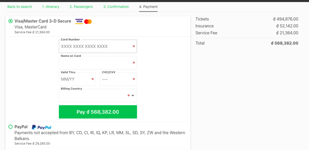- Tiếp theo nhớ kiểm tra kỹ, xác nhận đơn hàng và chuyển qua thanh toán. Bạn có thể thanh toán bằng thẻ VISA/ MASTER/ PAYPAL,…