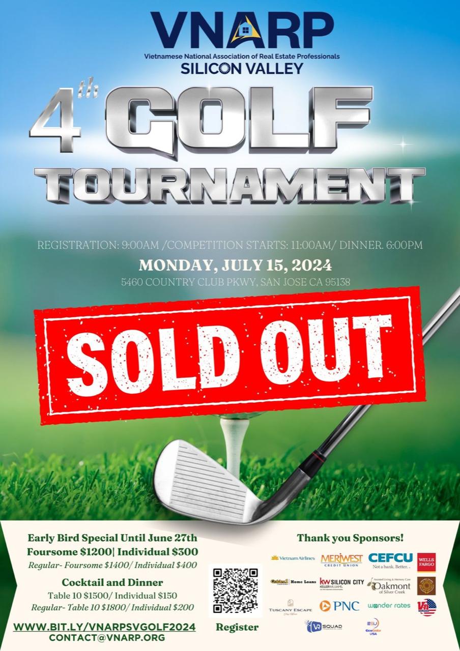 Giải Golf lần thứ 4 do VNARP tổ chức tại Silicon Valley, California vào Thứ 2 ngày 15 tháng 7 năm 2024 rất mong tất cả vận động viên chơi Golf tham gia giải lần này.