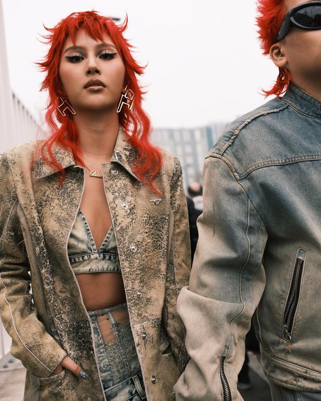 Một chất liệu không mới nhưng vẫn luôn là nguồn cảm hứng bất tận để sáng tạo. Đầu năm 2023, tại tuần lễ thời trang ở Milan, ta bắt gặp hình ảnh cô nàng fashionista Quỳnh Anh Shyn khoác lên mình những set denim vô cùng táo bạo – cá tính. Chiếc bra denim khoe trọn đường cong cơ thể kết hợp cùng jacket tạo nên một phong cách đường phố vô cùng bụi bặm, hoang dại.