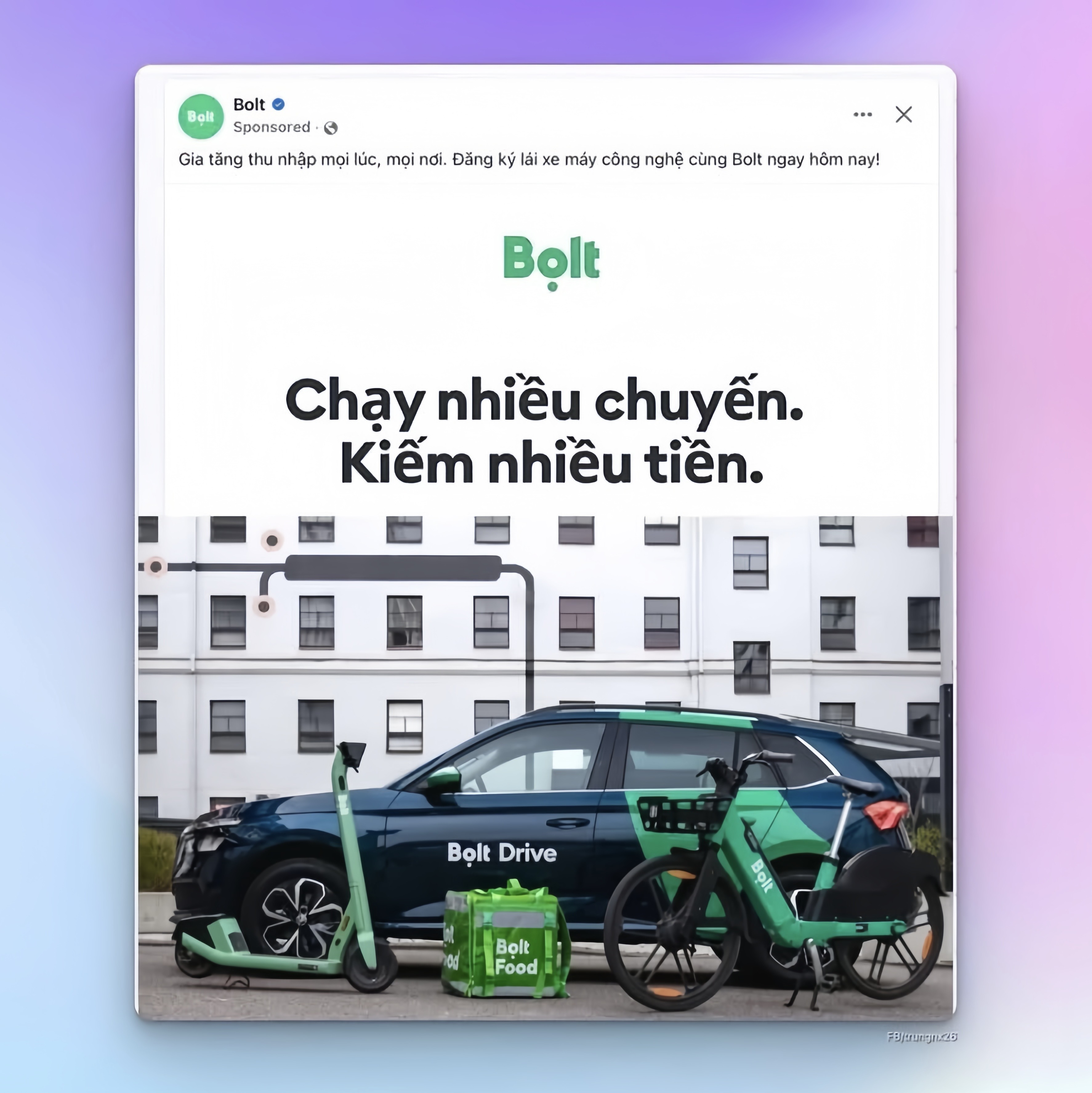 Các bài tuyển dụng tài xế Việt Nam của BOLT trên các nền tảng mạng xã hội.