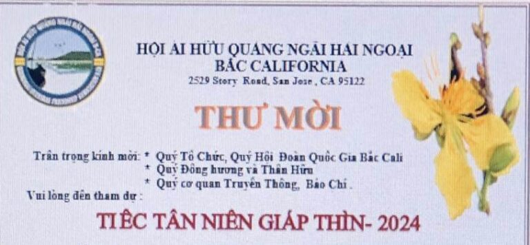 AA THƯ MỜI đăng báo TIỆC TÂN NIÊN GIÁP THÌN HỘI ÁI HỮU QUẢNG NGÃI HẢI NGOẠI BẮC CALIFORNIA THƯ MỜI Trân trọng