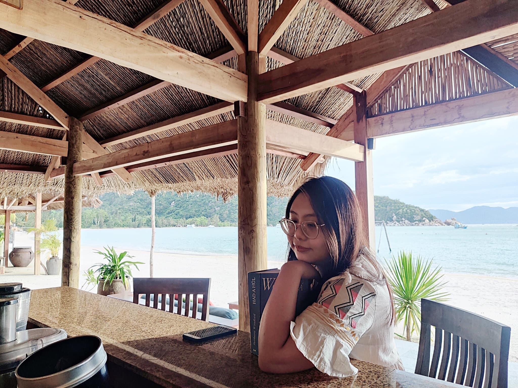 Đọc sách ngoài biển cũng là việc tôi thường làm mỗi khi du lịch một mình. Nó giúp mình thư thái và tịnh tâm (Jollie Uyen)
