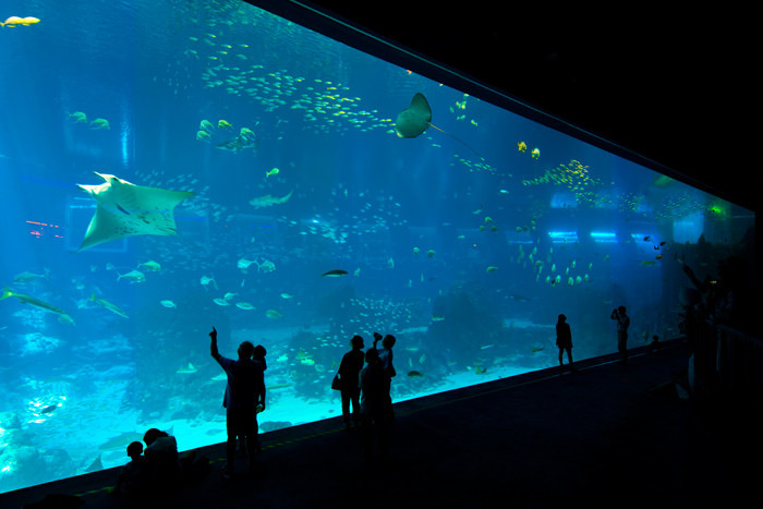 Qua hệ thống ô kinh trong suốt, bạn có thể thoái mái ngắm nhìn bộ sưu tập sinh vật biển như cá mập, cá heo, nhện khổng lồ, cá đuối cùng vô số các loài lạ và quý hiếm.