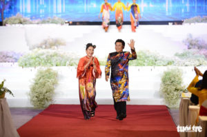 Nghệ Sĩ Kim Xuân và Tạ Minh Tâm trong mẫu thiết kế của nhà thiết kế Việt Hùng